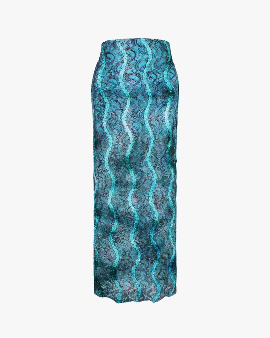 Dalias, este es el nombre que representa este diseño de falfa larga de encaje q recuerda la moda de los 80 y 90 con un tejido de gasa de encaje elástica hecha a mano en Europa de edición limitada con malla, nailon y fibra spandex (elástica en cuatro direcciones)