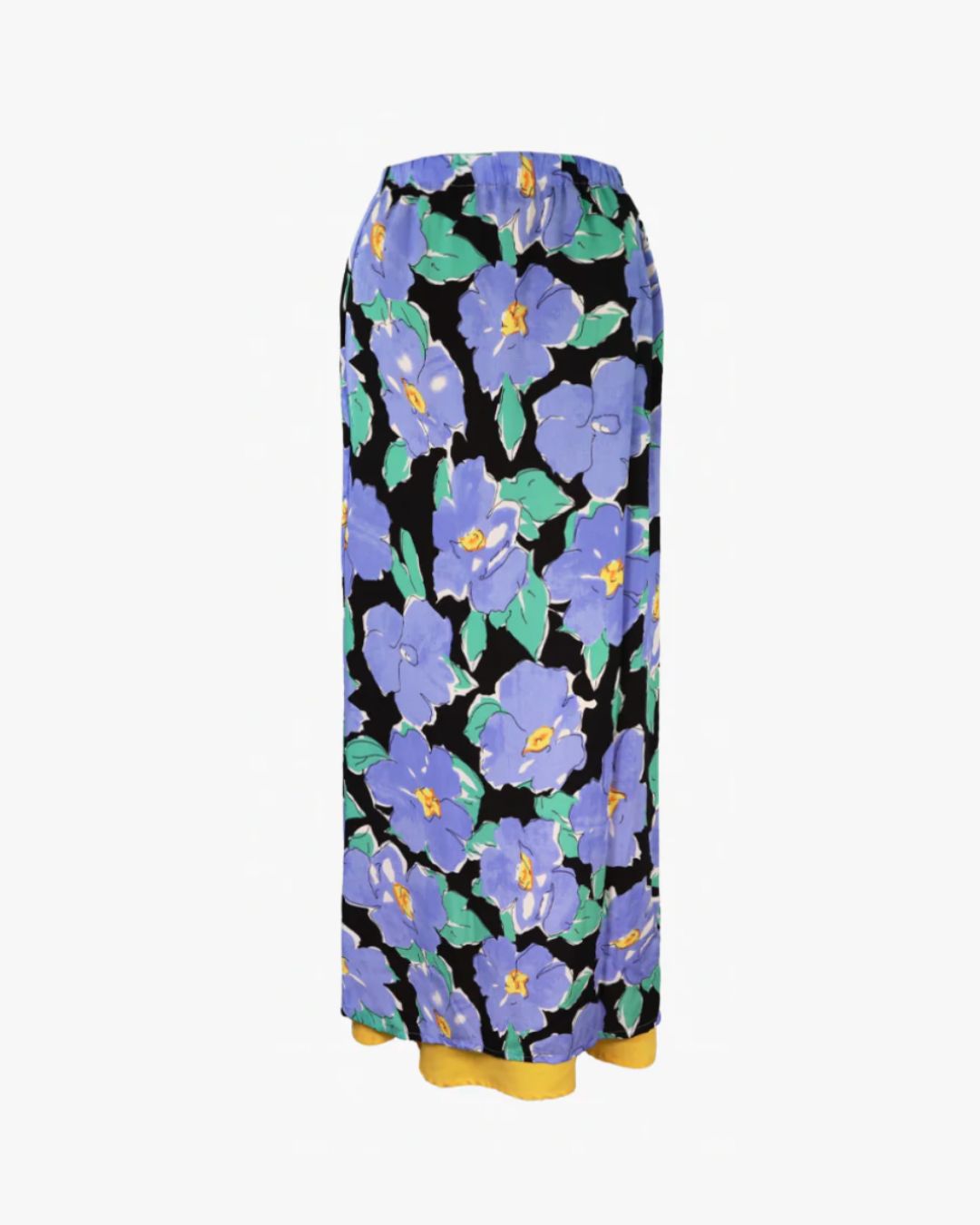 Iris, este es el nombre que representa este diseño de falda larga con forro que recuerda la moda de los 80 y 90 con un tejido de algodón hecha a mano en Europa de edición limitada con algodón.